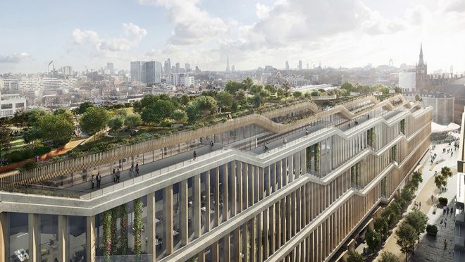 Google‘ın Londra’da yeni bir merkez binası inşa etmek istediği bir süredir herkes tarafından biliniyordu fakat bu konudaki çalışmalar bir türlü resmiyete dökülememişti. Uzun yıllar süren tasarım aşamasının ardından Google sonunda resmi başvuruyu gerçekleştirdi.Son aylarda hepimiz ilgiyle Apple’ın 5 milyar dolarlık yeni üssüne ait görüntüleri heyecanla takip ediyoruz. 12 binden fazla çalışana ev sahipliği yapacak olan Apple Park‘ın ardından gözler Google’ın Londra’daki yeni merkezine çevrildi. King’s Cross bölgesinde yer alacak olan bu bina Heatherwick Studios ve Bjarke Ingels Group tarafından tasarlandı. 11 kattan oluşacak bina 330 metre uzunluğunda olacak. Avrupa merkezi 100,000 metrekarelik alana kurulacak ancak bina bölümü arazinin sadece yüzde 65’ini kapsayacak. Böylece King’s Cross, Google’ın Amerika dışındaki ilk merkezine ev sahipliği yapmış olacak. Meydana bambaşka bir hava katacak olan binanın ilk katı ise ofis olarak kullanılmayacak. Aksine çeşitli mağazaların yer aldığı bir alışveriş merkezi havasına sahip olacak. Londra’daki farklı bölgelere yayılmış olan Google çalışanları binanın tamamlanmasından sonra buraya taşınacak. Avrupa’daki bu şahane merkezin 7000’den fazla Google çalışanına ev sahipliği yapacağı söyleniyor.
